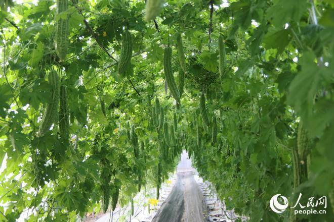 苦瓜垂挂藤间天源国际,呈现一派生机勃勃的景象。人民网记者 陈博摄
