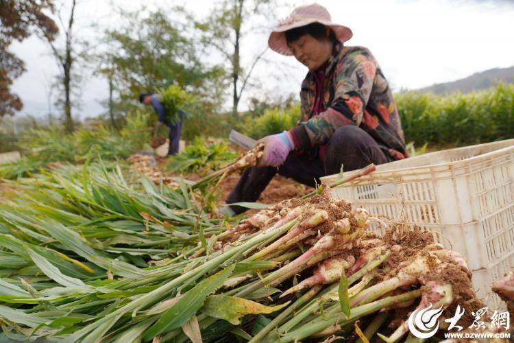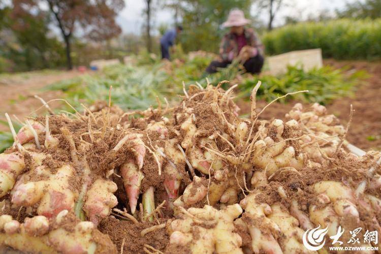 11月6日,山东省临沂市沂南县马牧池乡野竹旺村村民在收获生姜。